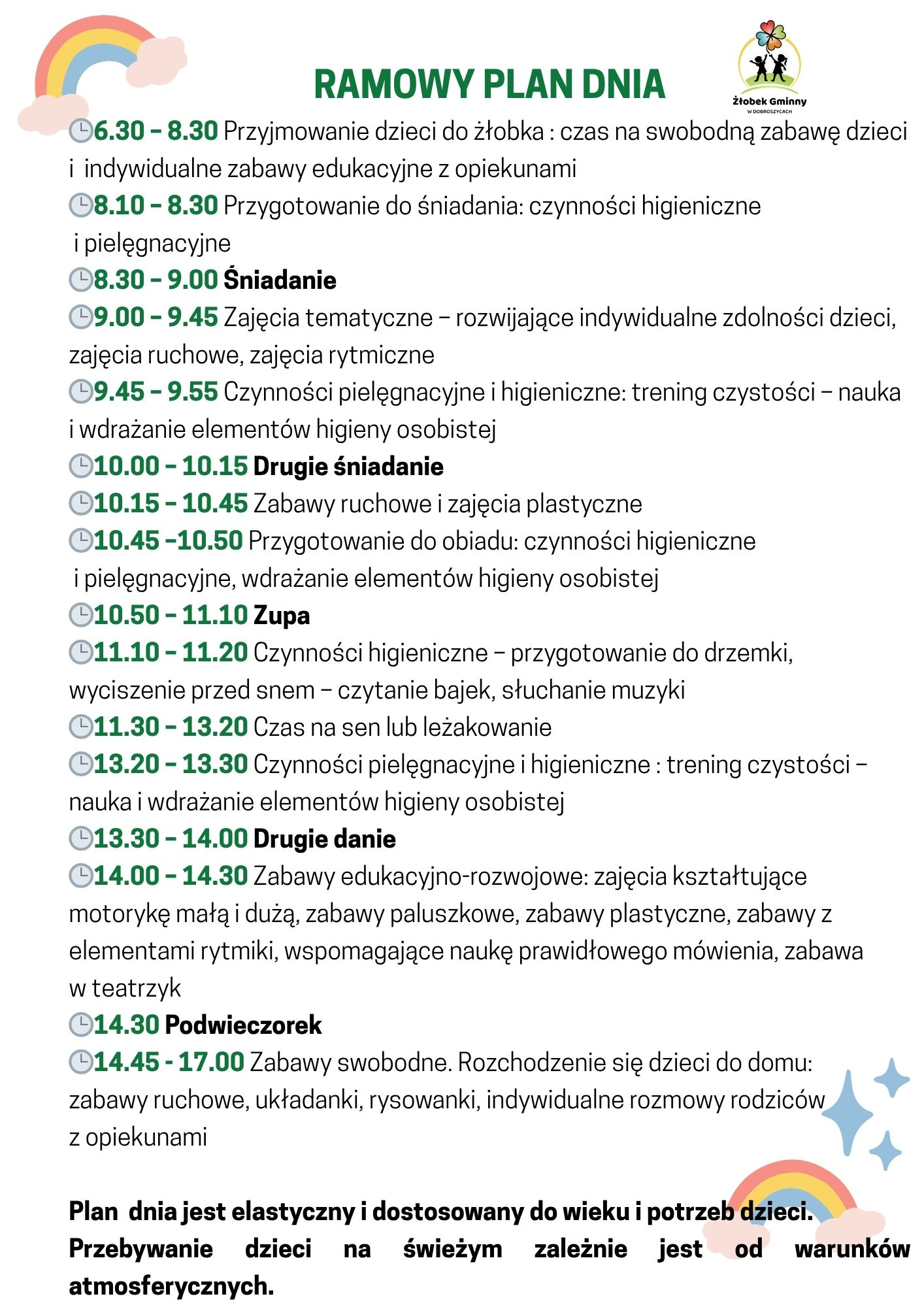 6.30 – 8.30 Przyjmowanie dzieci do żłobka (czas na swobodną zabawę dzieci, indywidualne zabawy edukacyjne z opiekunami, możliwość konsultacji rodziców z opiekunami)