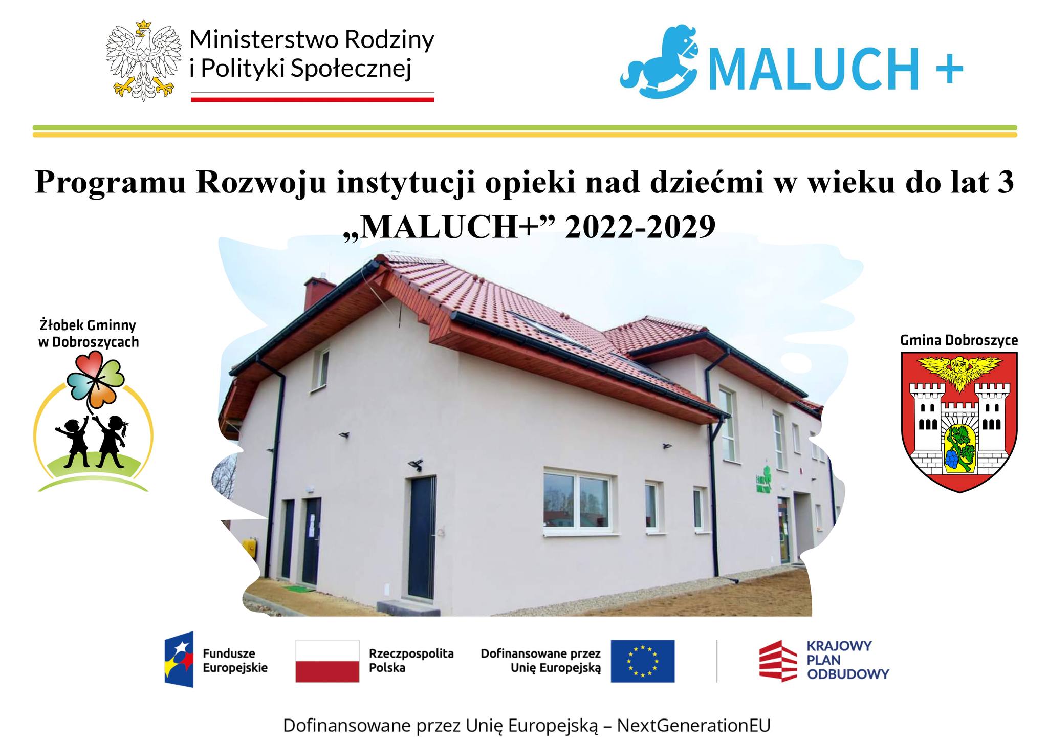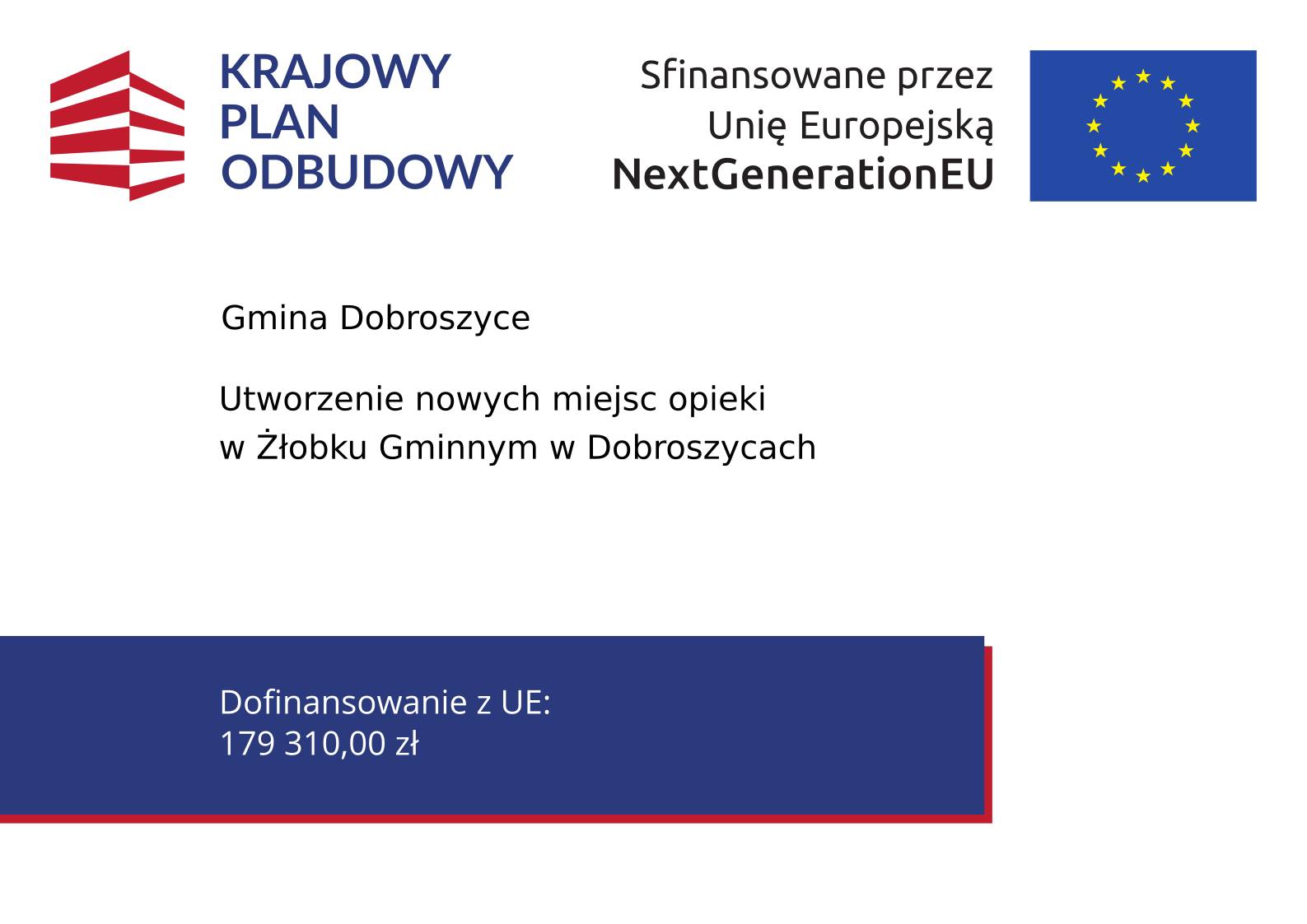 zł na utworzenie dodatkowych miejsc opieki w Żłobku Gminnym w Dobroszycach. Dzięki uzyskanemu dofinansowaniu placówka